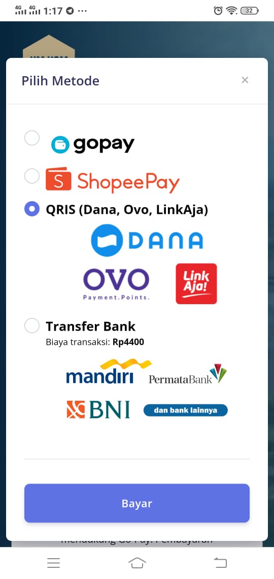 Pilih metode pembayaran yang kamu inginkan. Misalnya menggunakan QRIS