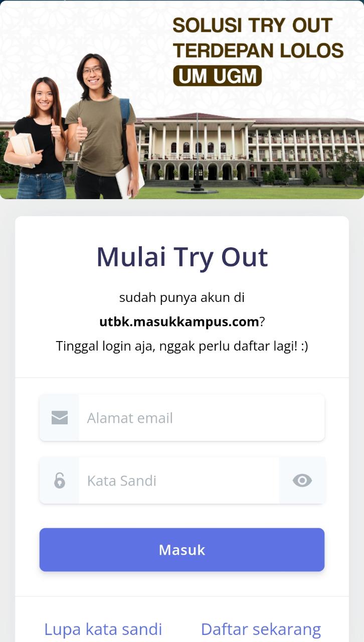 Pilih “Daftar sekarang” untuk mendaftarkan diri kamu sebagai peserta TO online UM-CBT UGM Masuk Kampus